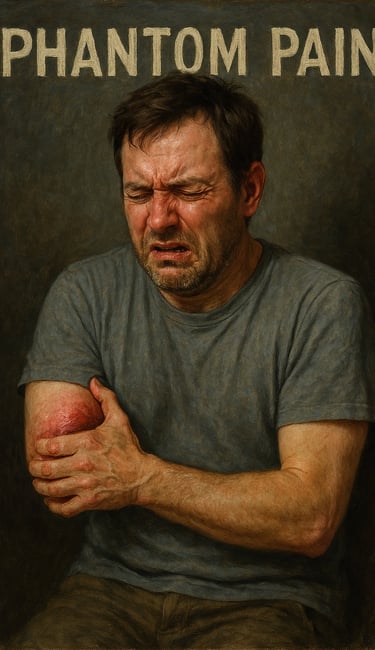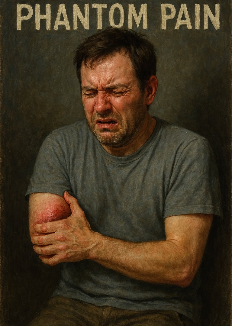 Phantom pain can be described as a painful sensation perceived in a body part that is no longer physically present. The pain is real, not imagined, and often feels as though the missing body part is still attached.